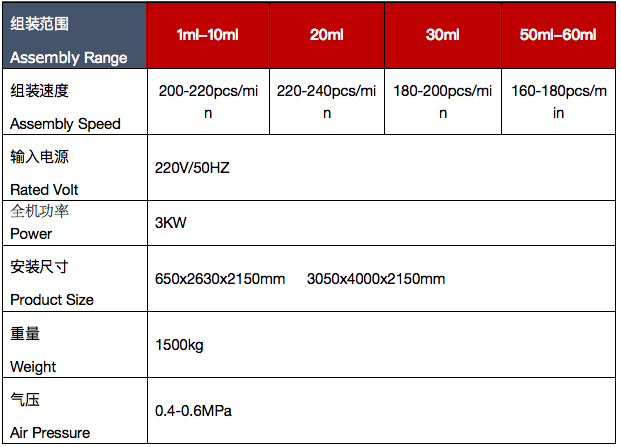 u 本設備能組裝各種規(guī)格注射器,包括中頭直插式、螺口式、偏頭式等。對產(chǎn)品各配件進行自動上料、組裝。
